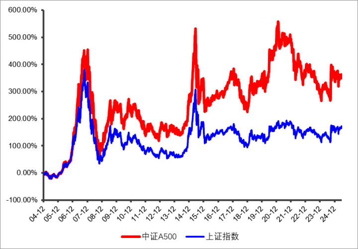 中证A500指数的“聪明”选股机制、核心资产集中覆盖,个股质量更佳,亦反映在其长期回报上。截至2025年6月30日,中证A500指数自基日(2004年12月31日)以来年化累计涨幅363.05%,远超同期上证指数171.96%的涨幅,表明中证A500指数具备更具吸引力的长期表现。