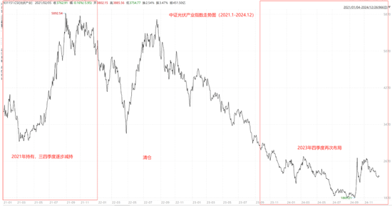 图5:中证光伏产业指数走势图(2021.1~2024.12)及广发鑫益持仓情况